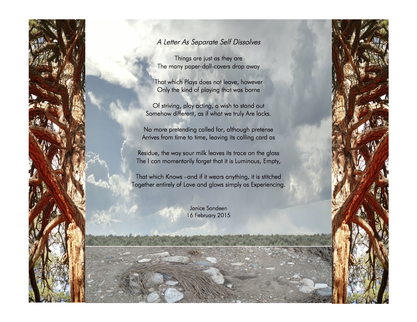 Thank you all (especially for the recent followers in 2015, who I haven’t had a chance to thank yet!) I have just created the above collage version of a poem of mine from back in February to share with a community, which I am part of, who are meeting in person soon. This photo collage version of my poetry is BRAND NEW for me.